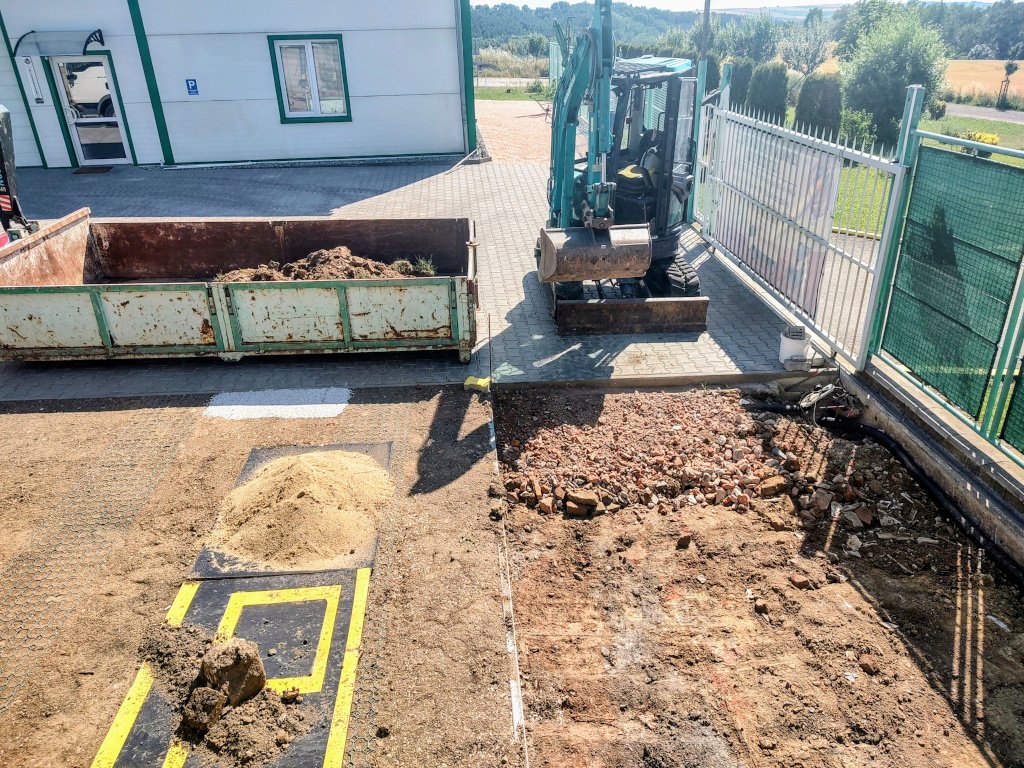 Provedli jsme odtěžení ornice a hlušiny jako přípravu terénu pro pokládku dlažby v Nivnici. Nejprve jsme odstranili vrchní vrstvu ornice, následně vytěžili hlušinu do projektované hloubky a materiál odvezli ze stavby. Terén jsme srovnali do požadovaných výšek a spádů tak, aby byl připraven pro zřízení štěrkového podloží a následnou pokládku dlažby. Díky nasazení vhodné techniky a pečlivému srovnání vznikl stabilní a rovný základ pro další práce.